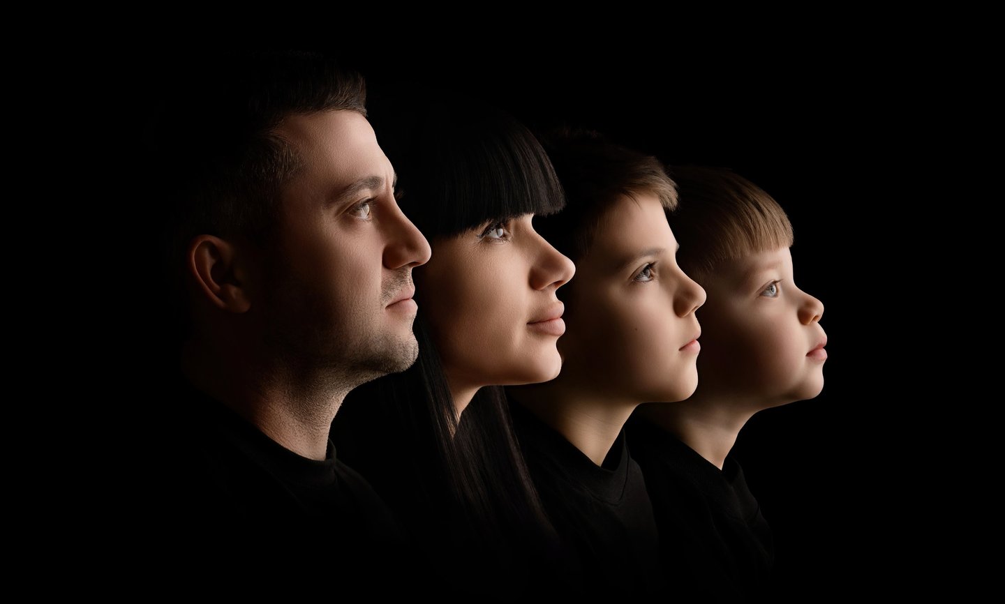 Set against a clean black backdrop and lit with professional precision, these portraits celebrate your family’s bond in a style that is bold, elegant, and deeply personal.